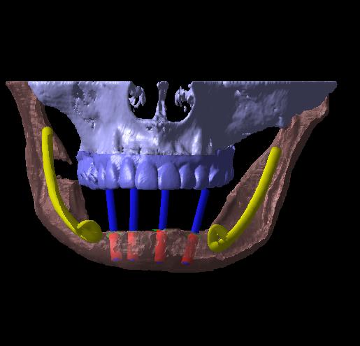 インプラント体で下顎骨の中を走る神経やオトガイ孔から出た神経を傷つける可能性があるため