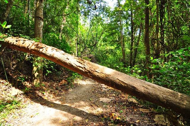 砂の山の周囲の砂をを少し削ったら砂が崩れます。