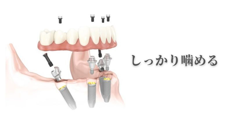 オールオン4Ⓡインプラントとは最少4本のインプラントですべての歯を支える治療方法の事を言います。