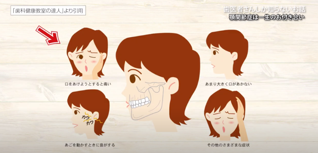 よく高齢の方が「膝が痛い」「お皿が痛い」「骨と骨が擦れて痛い」と言っているような症状が顎に起こっているものとお考え頂ければと思います。