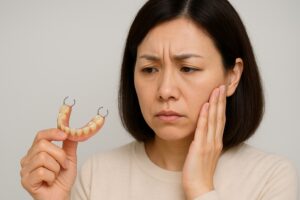 入れ歯の金属の引っ掛けバネが見た目が気になって恥ずかしい
