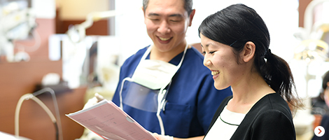 - 先輩歯科衛生士さんも最初はゼロからのスタートです。すべて丁寧に指導しますのでご安心下さい。チャレンジしたいことは全面的に応援する体制が整っています。