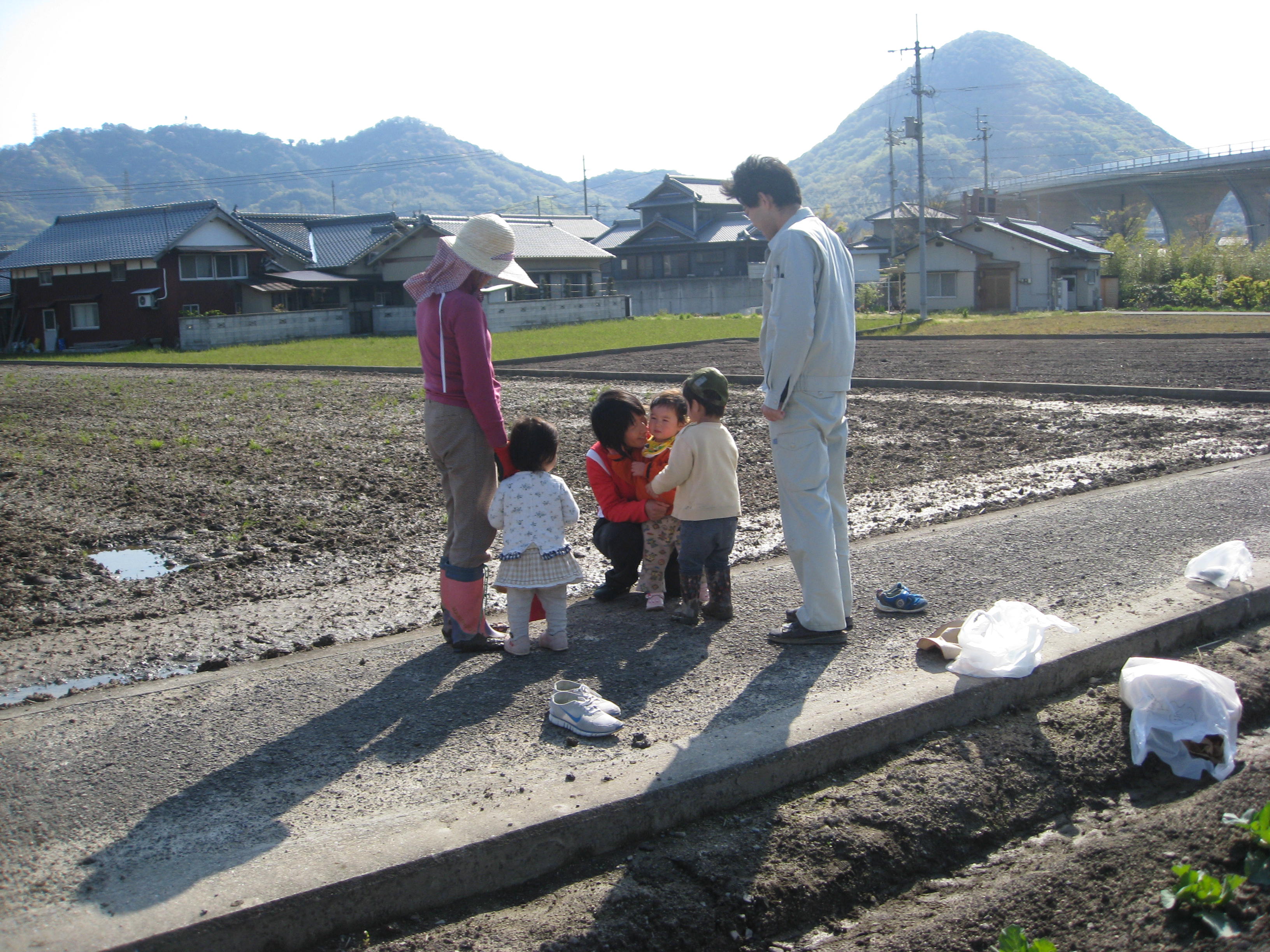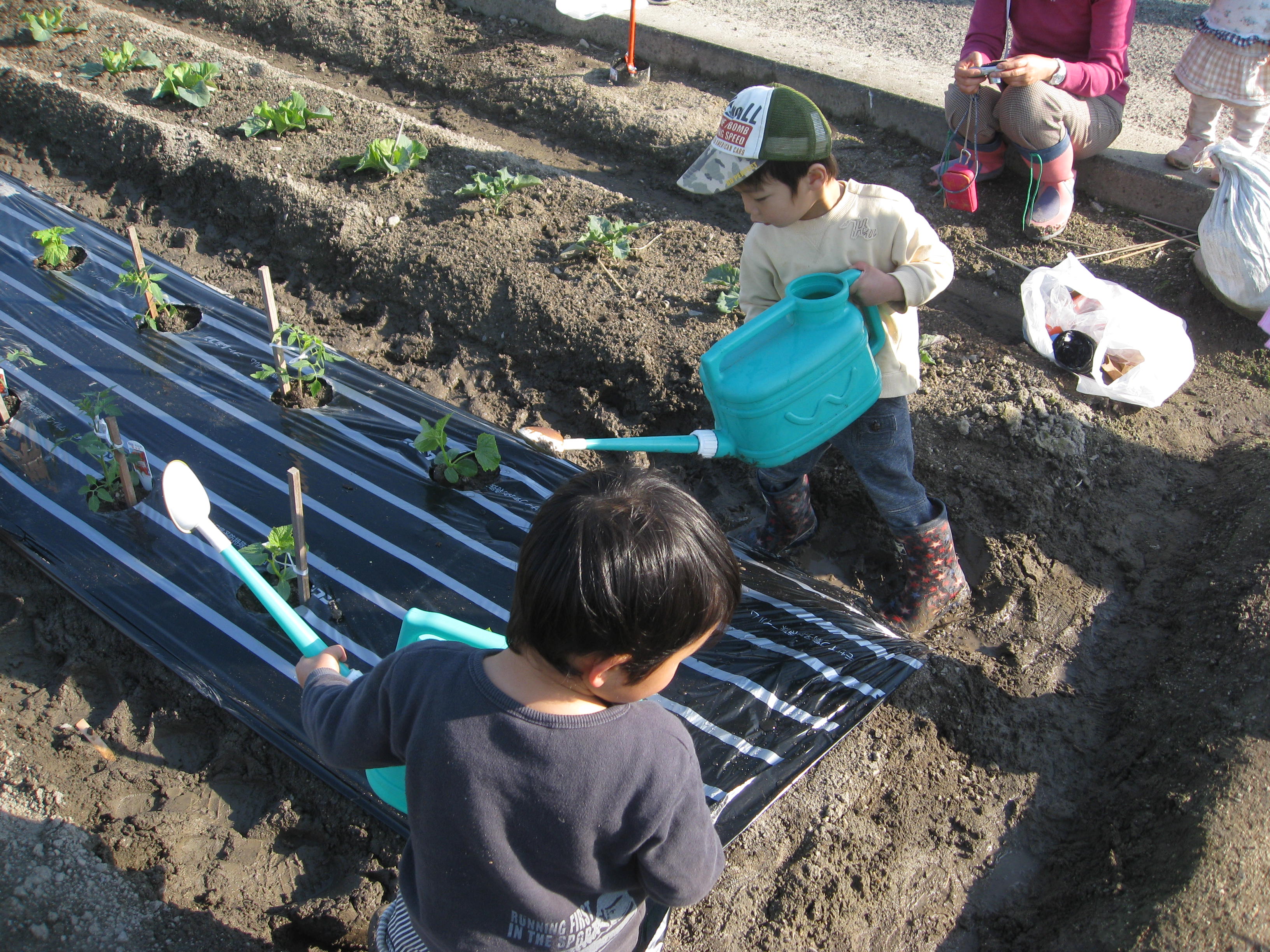 未来をになう子供たち・・・今から長くつにはきかえ畑に!