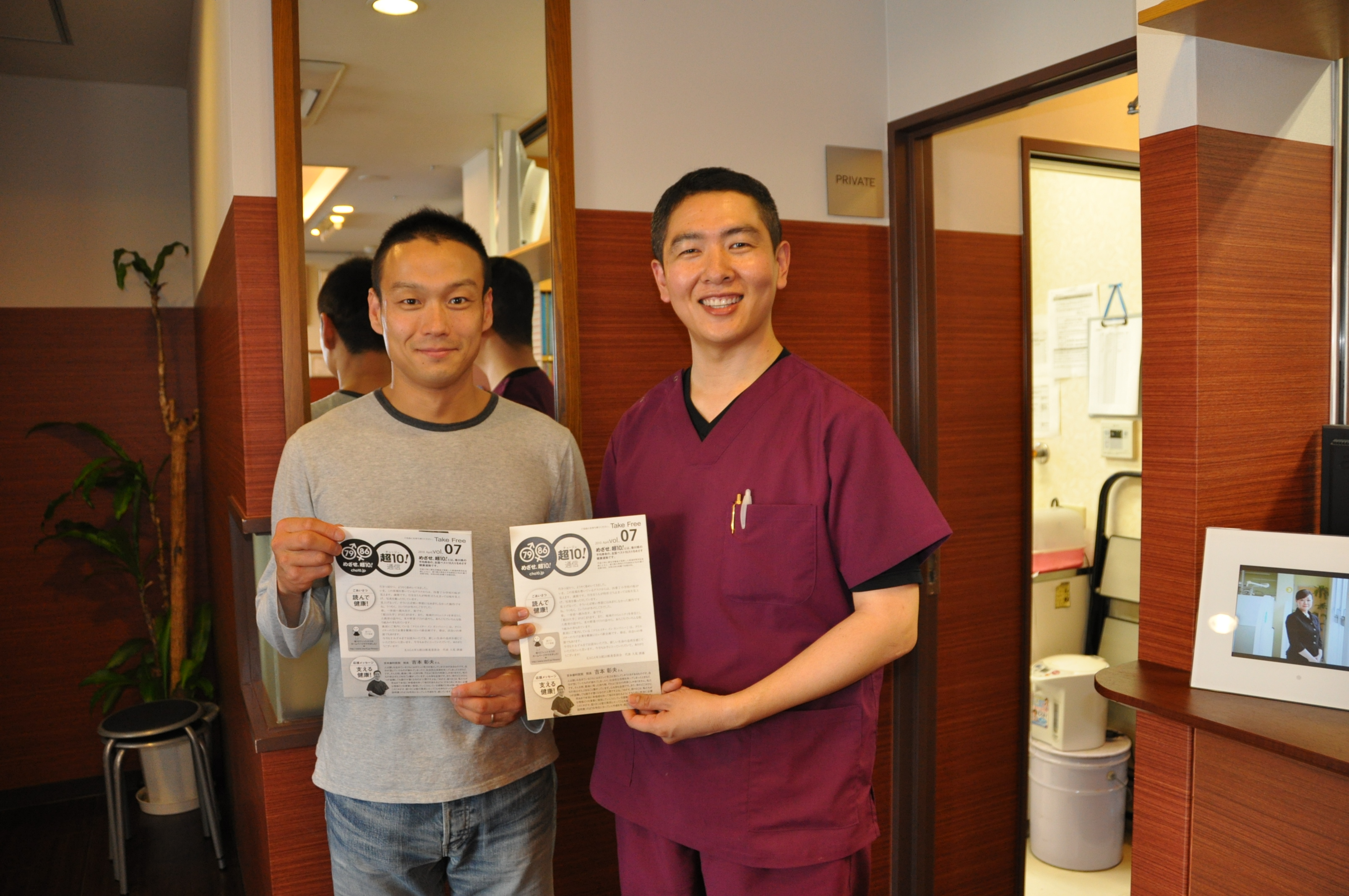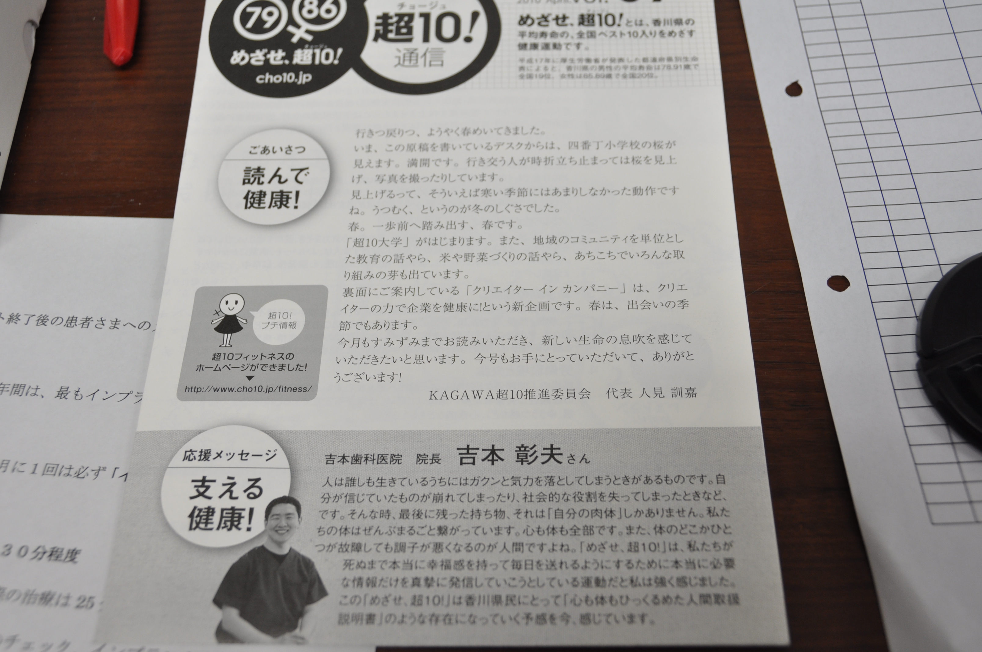 めざせ!超10新聞を発行しているコピーライターの人見訓嘉さんが今月号の超10新聞を持ってきて下さいました。(超10新聞は吉本歯科医院の受付においておりますのでどうぞお持ち帰り下さいね)