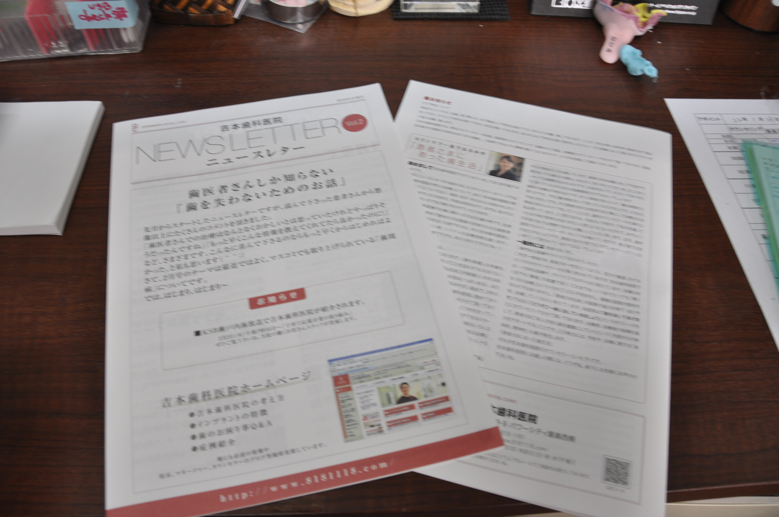 吉本歯科医院のニュースレターもすみずみまでお読み下さっており私どもも一生懸命作った甲斐があります。