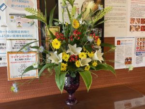 香川県高松市の噛み合わせ専門歯科 吉本歯科医院のマネージャー吉本委子です。 GW明け、藤本先生が玄関のお花をお持ち下さいました。5月新緑のムクムクとしたエネルギーを感じるお花です🌸素敵!