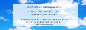 2024年6月24日(月)25日(火)26日(水)休診のお知らせ