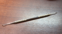 その白い点の穴の中に細い針を慎重に入れていきます。