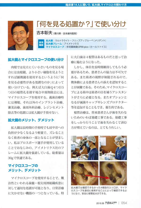 吉本彰夫は1ミリ、いやもっと狭い0.1ミリの世界で治療を行っております。