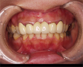 上の前歯、歯茎との境目が露骨で、白さ、形が不自然です。明らかに被せものをしているとわかってしまいます。