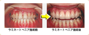 歯の表面だけを薄く削り、シェル状のセラミックを張り付けて審美的修復を行う治療法です。