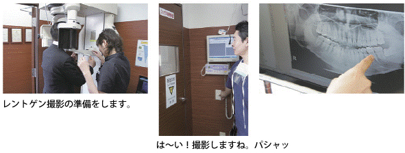 吉本歯科医院ではまずは、骨の状態を確認するためにパノラマレントゲンというお口全体が見える写真を撮影します。
