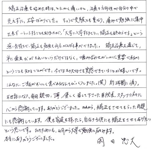 矯正治療を終了された岡田忠大様