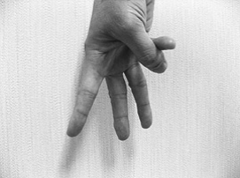 正面から撮影した手ですが、指が2本見えています。