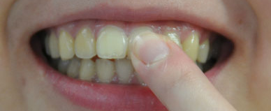 そのことによってドミノ倒しのように健全な歯並びを乱し、少しの咬む力で前歯が折れてしまうことがあります。